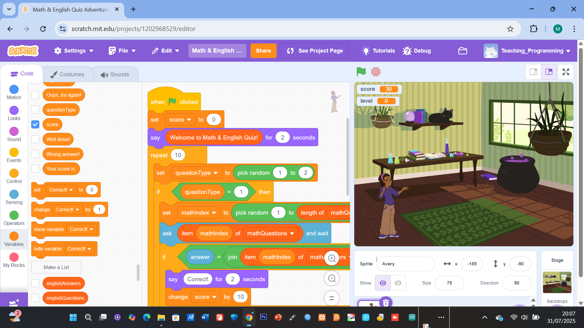 Mengintegrasikan logika berpikir, kreativitas, dan problem solving melalui proyek coding.